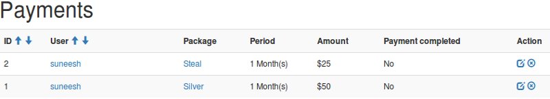List all the payments made by users. You will get payments only if Service Type set to package enabled.